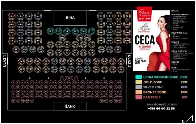 Ove godine za novogodišnju noć sprema se nezaboravan program, a glavna zvezda večeri biće Svetlana Ceca Ražnatović. Njeni najveći hitovi, energičan scenski nastup i prepoznatljiva harizma stvoriće atmosferu koja će oduševiti sve prisutne.